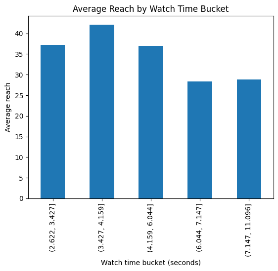Upon reviewing the test results for average watch duration in relation to reach, we decided to investigate further by separating them into five different watch time brackets.