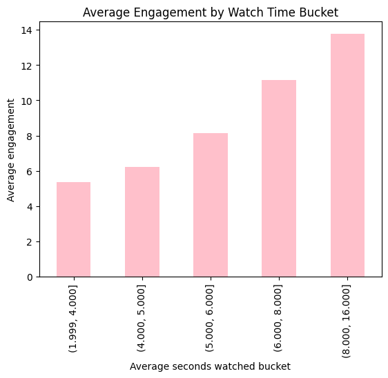 Once again, we can separate and see how average engagement is impacted by different watch time buckets and produce the following chart: